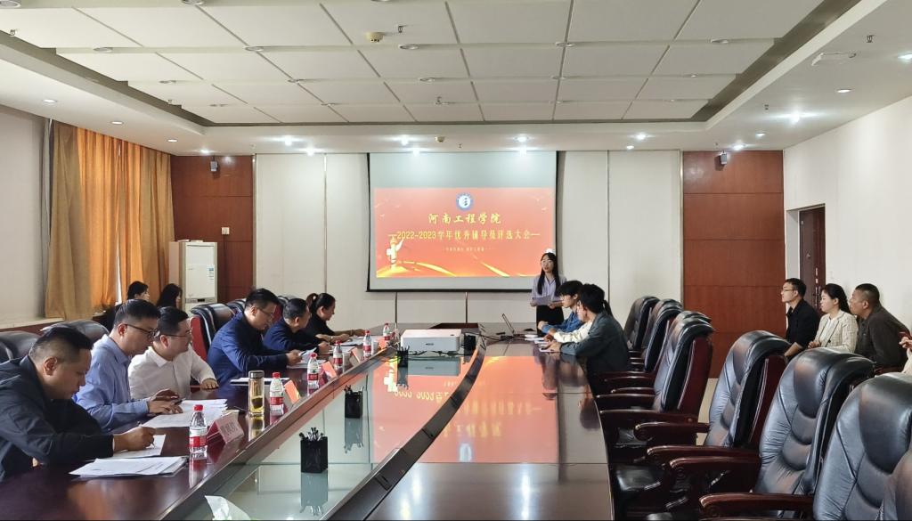 为全面了解金宝搏官网辅导员的思想政治表现、工作能力、工作实绩,选树辅导员先进典型,发挥引领示范作用,推动辅导员队伍专业化职业化发展,10月18日下午,金宝搏官网在综合楼十楼会议室召开2022-2023学年优秀辅导员述职评议大会。学生工作处处长介翔、校团委书记悦国宁等出席会议并担任评委,全体参评辅导员参加大会,会议由冯妍主持。